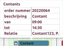 Door met de linkermuisknop op een order te klikken word er aanvullende informatie getoond. Hier kun je bijvoorbeeld rechtstreeks de omschrijving, begin- en eindtijd, de orderomschrijving aanpassen, maar ook reparatiehistorie raadplegen, de werkorder printen of afspraakbevestiging mailen.