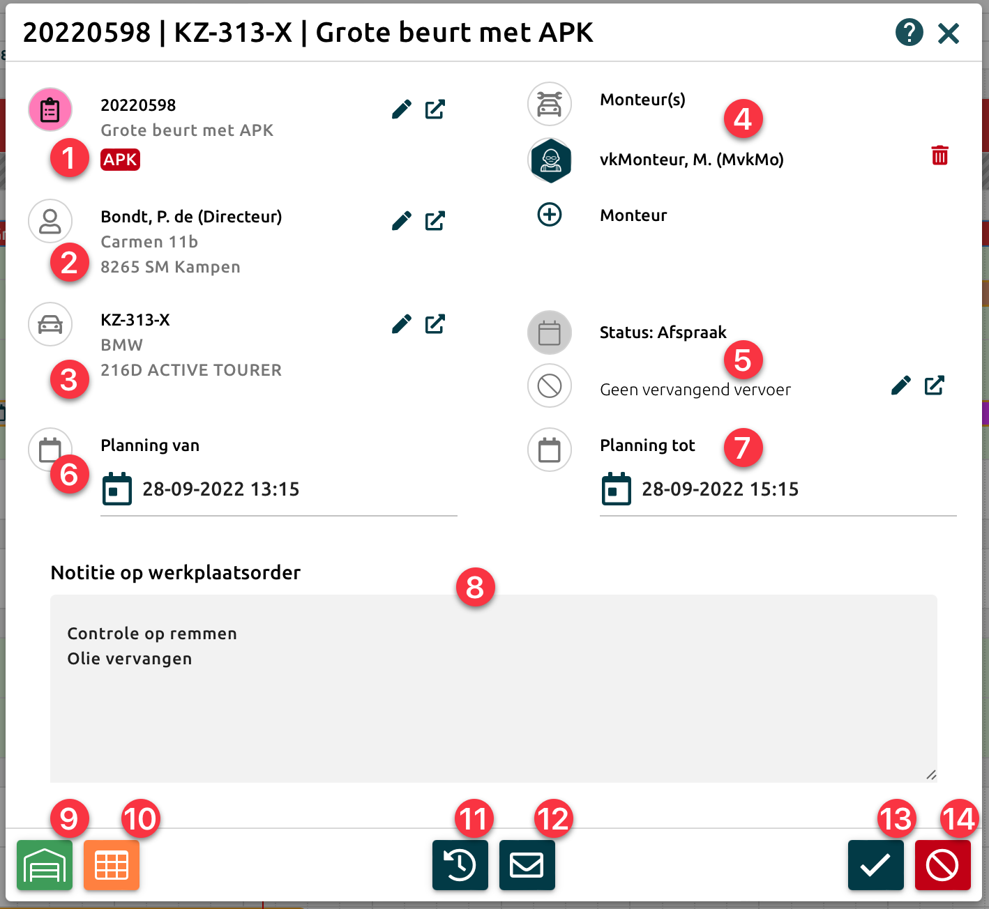 Alle werkorder details kun je in dit scherm bekijken en een ook aanpassen