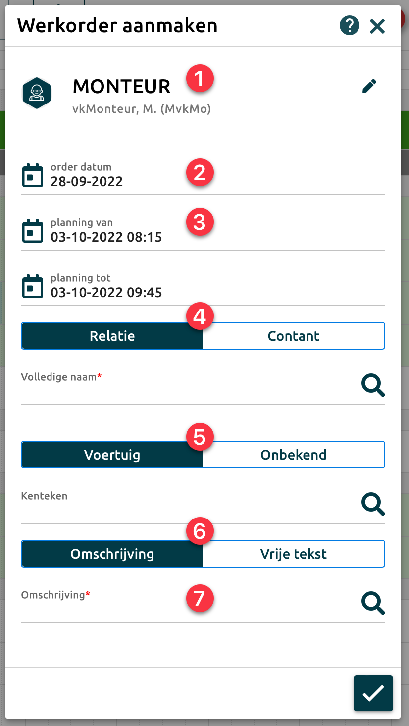 Alle werkorder details kun je in dit scherm bekijken en een ook aanpassen