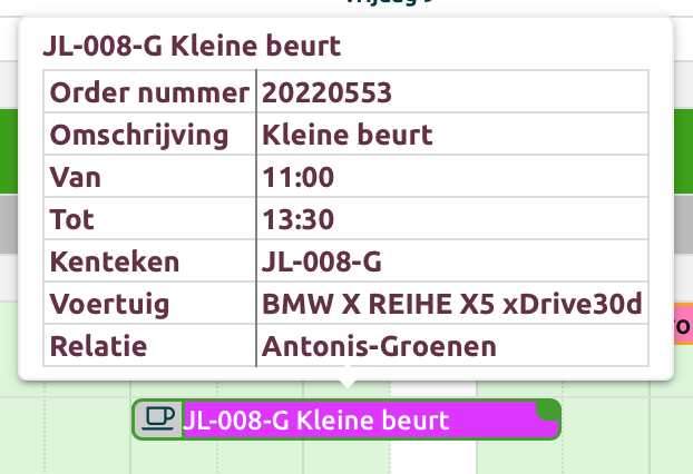 In de tooltip dit getoond wordt als de muis over de order regel gaat. In de tooltip staan de belangrijkste gegevens van de order |
