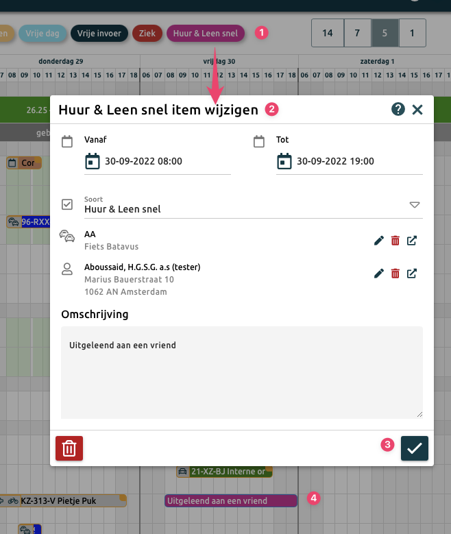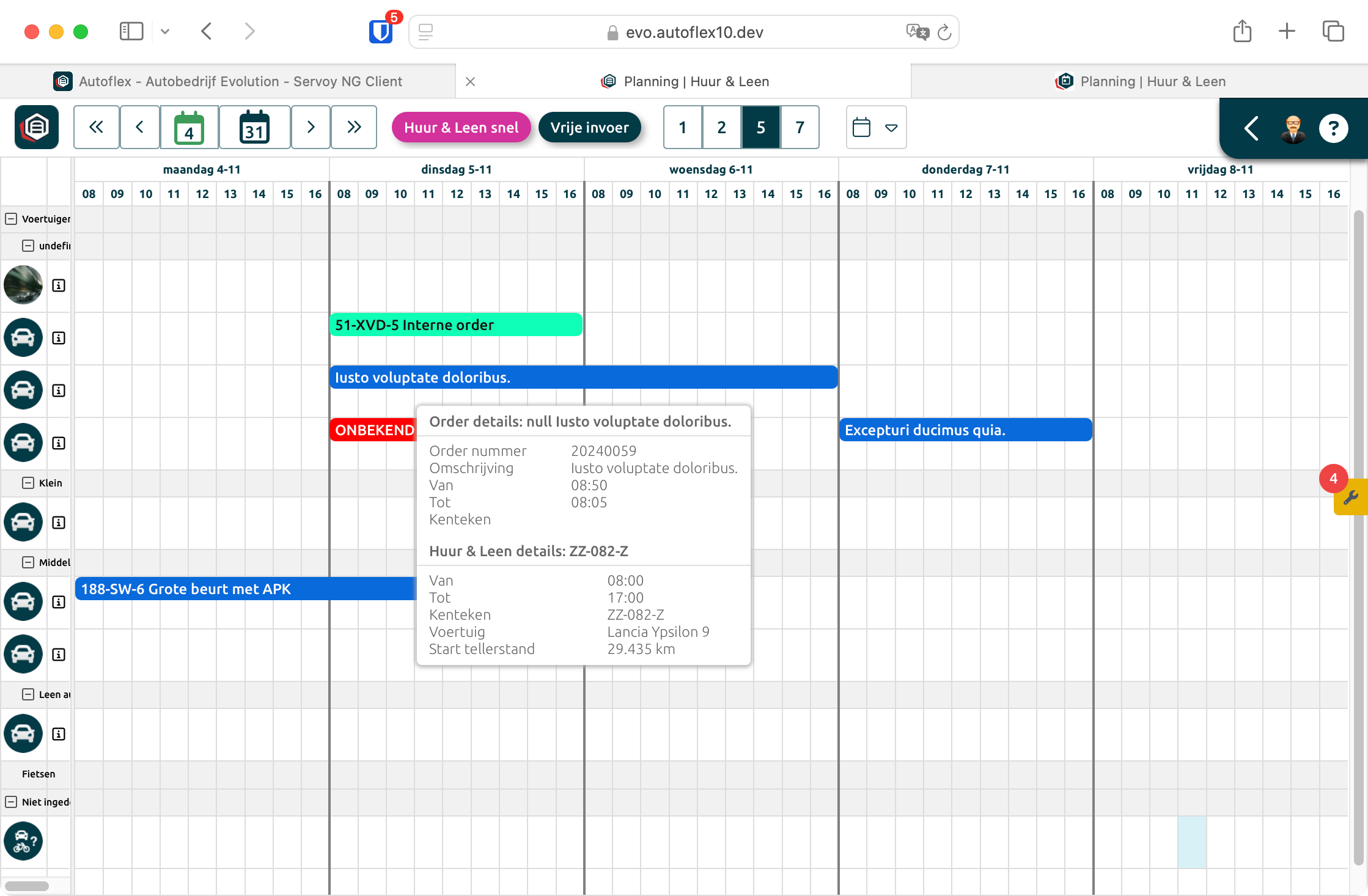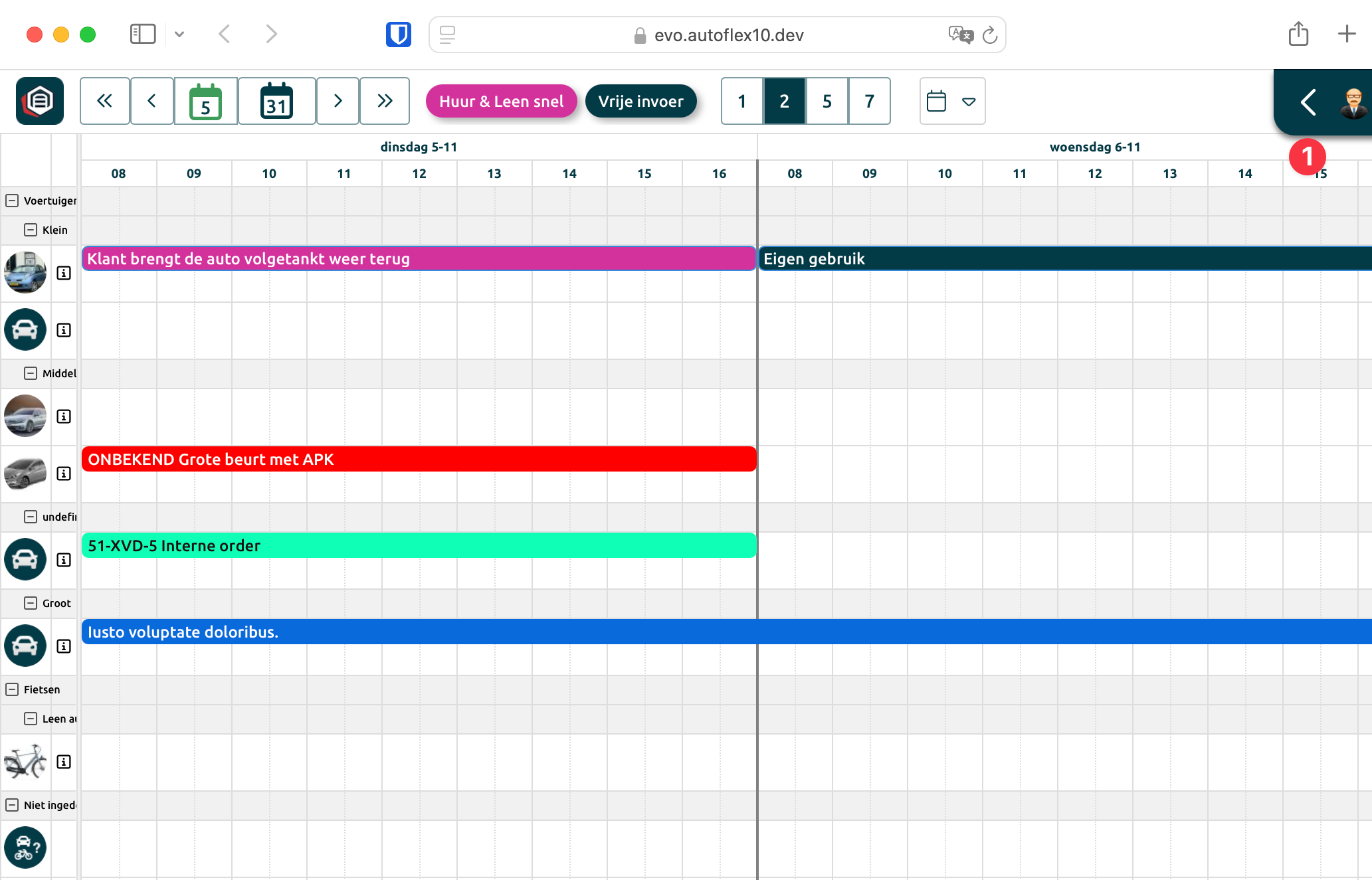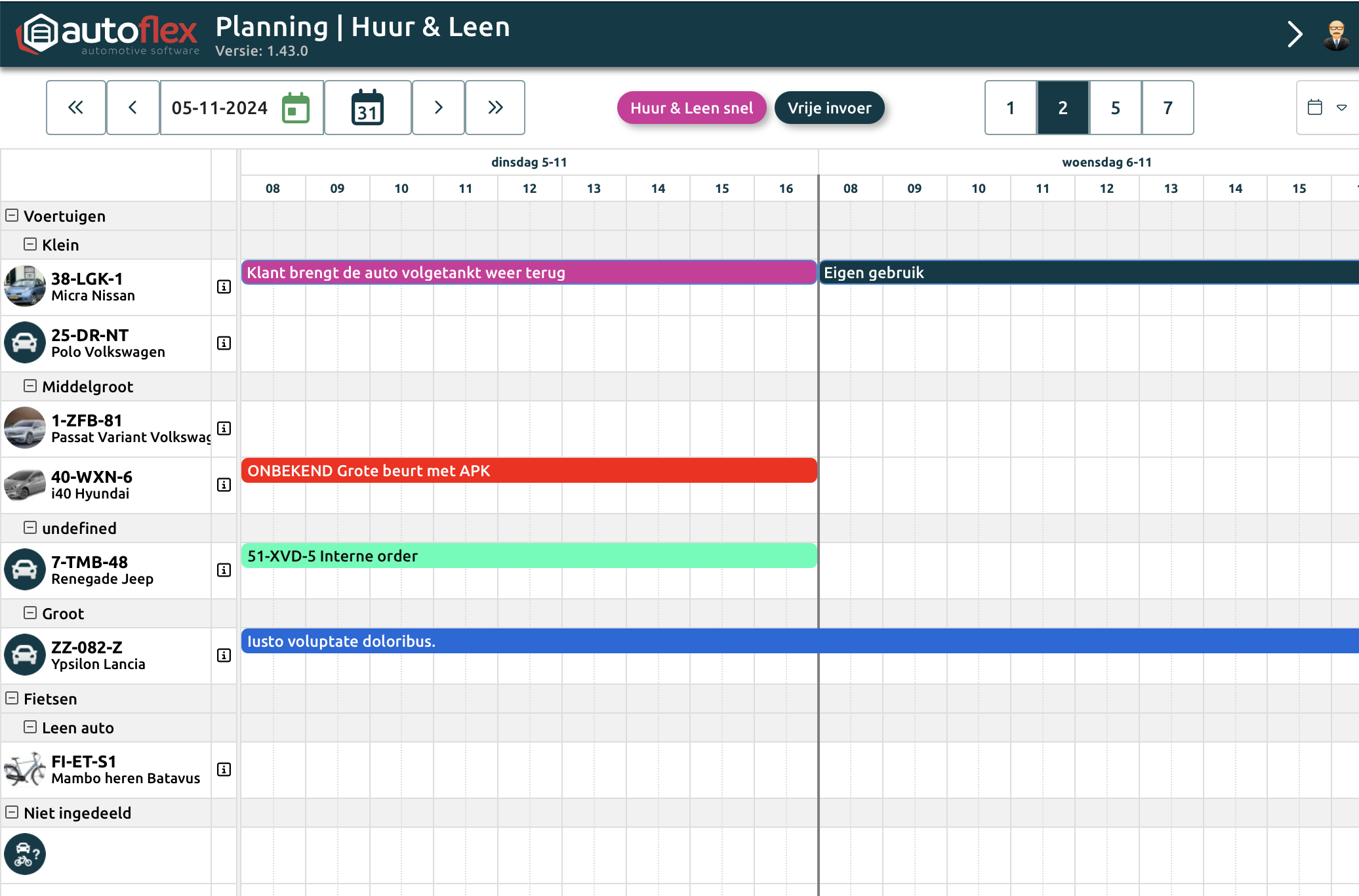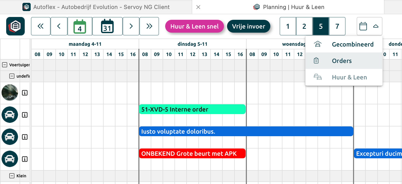 Overzicht van alle huur en leen voertuigen in de planning
