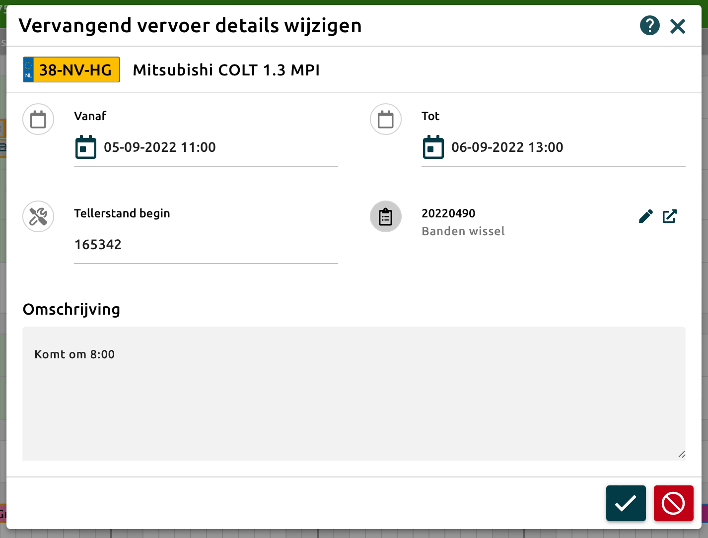 Vanuit de categorie Huur & Leen opent het dialoog: Vervangend vervoer details wijzigen, zodat direct de details van de afspraak gewijzigd kunnen worden.