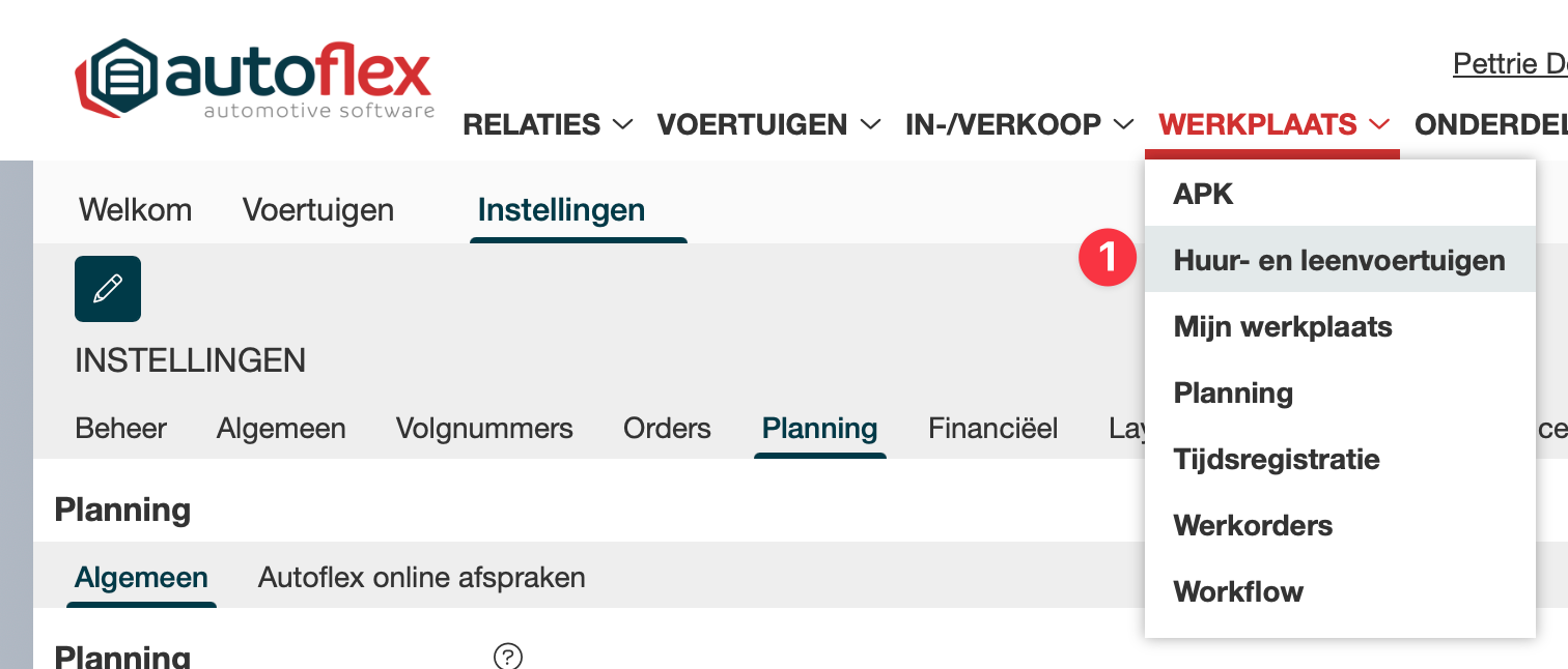 Kies vanuit het menu: Werkplaats → Huur- en leenvoertuigen