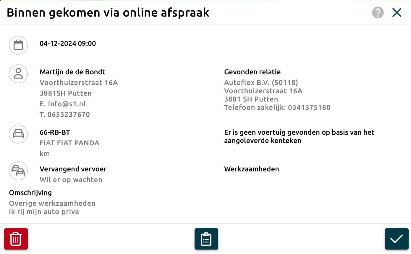 Deze afspraken kunnen vanuit de module Online afspraken komen, zie: Online afspraken . Of ze komen vanuit een partner partij die de online afspraken toevoegt aan de planning, zie ook: $ Autosociaal/EdLink gebruiken