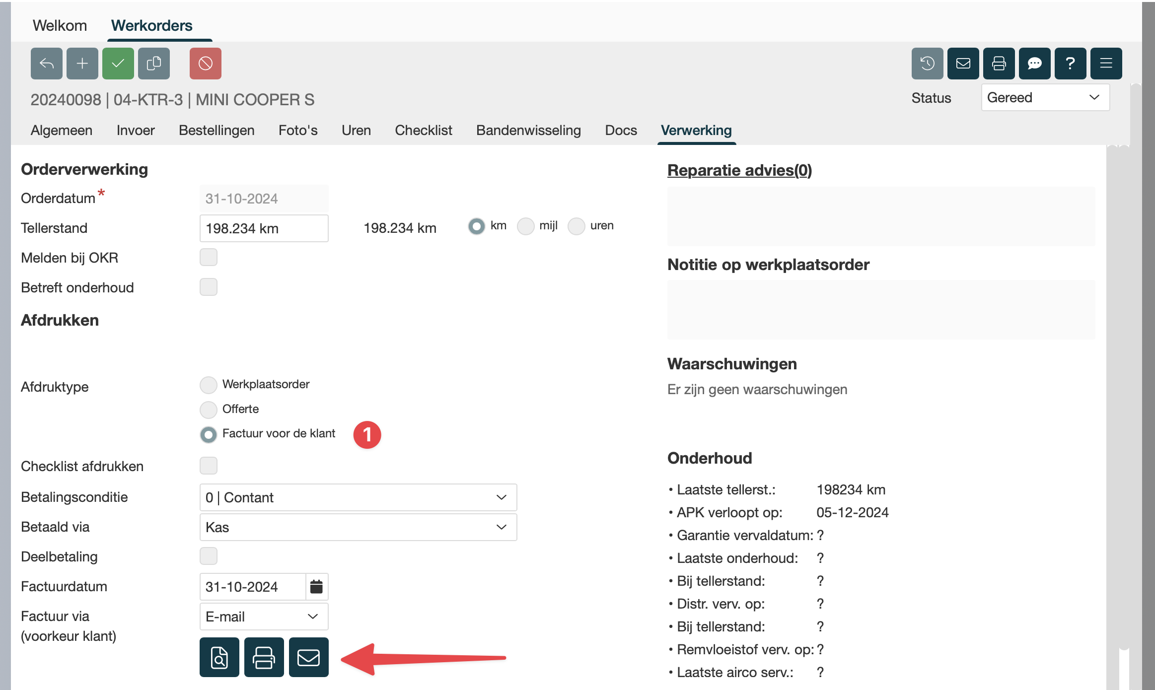 De werkorder wizard is er om snel een Order of een Contant factuur te maken vanuit een werkorder.