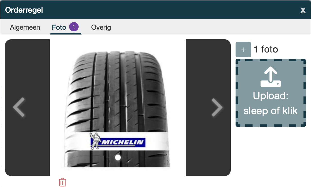 Na het toevoegen kan ook de volgorde van de foto worden aangepast door middel van Drag & Drop De toegevoegde foto's zijn zichtbaar onder de tab: Foto's van onderdelen |