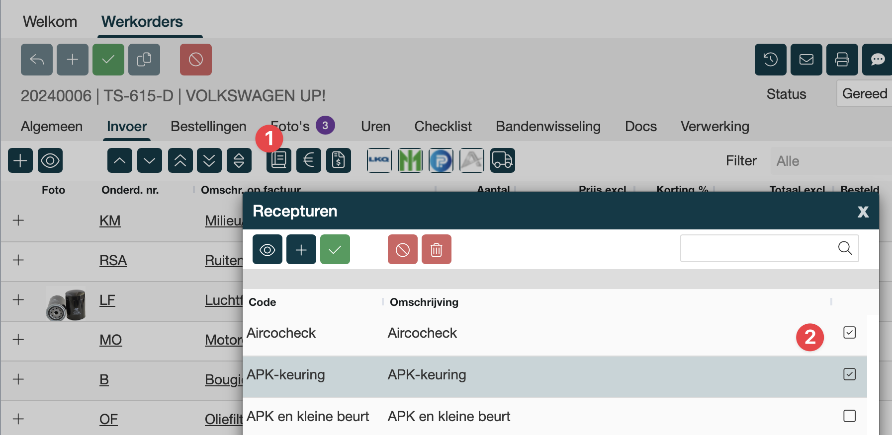 Tip: Zet het vinkje Betreft onderhoud aan bij APK en beurt recepturen.