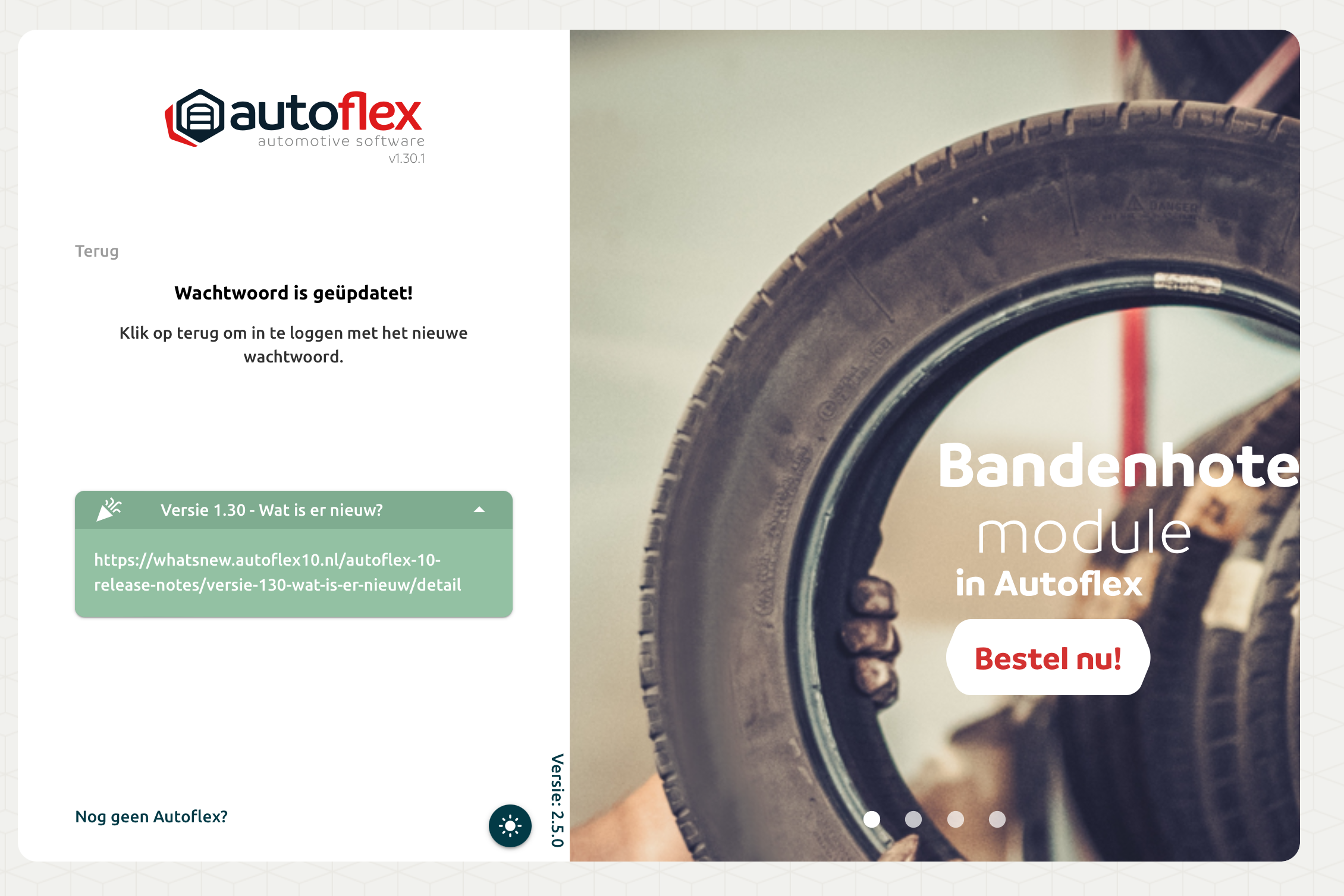 Via onderstaande stappen kun je gemakkelijk jouw wachtwoord aanpassen. Daarna kun je met het nieuw ingestelde wachtwoord weer verder werken in Autoflex.