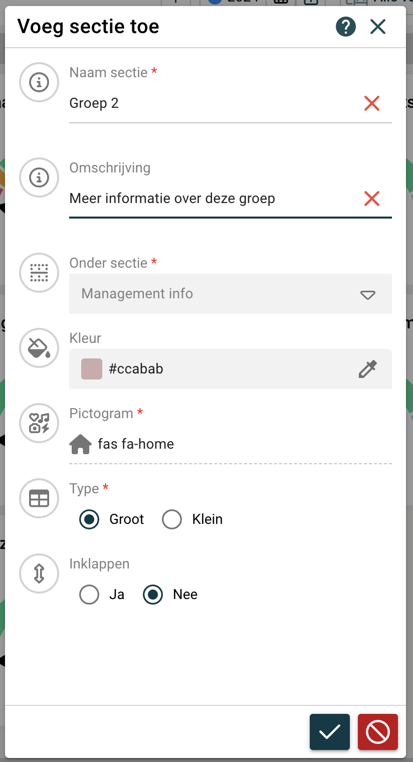 Sectie toevoegen/wijzigen  |