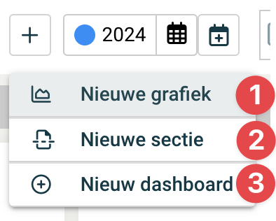 Maak een nieuwe grafiek, en voeg deze toe aan een bestaande sectie binnen het dashboard Maak een nieuwe sectie, en voeg deze toe aan het dashboard Maak een nieuw dashboard