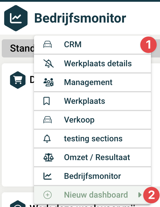 Dashboardmenu overzicht  |