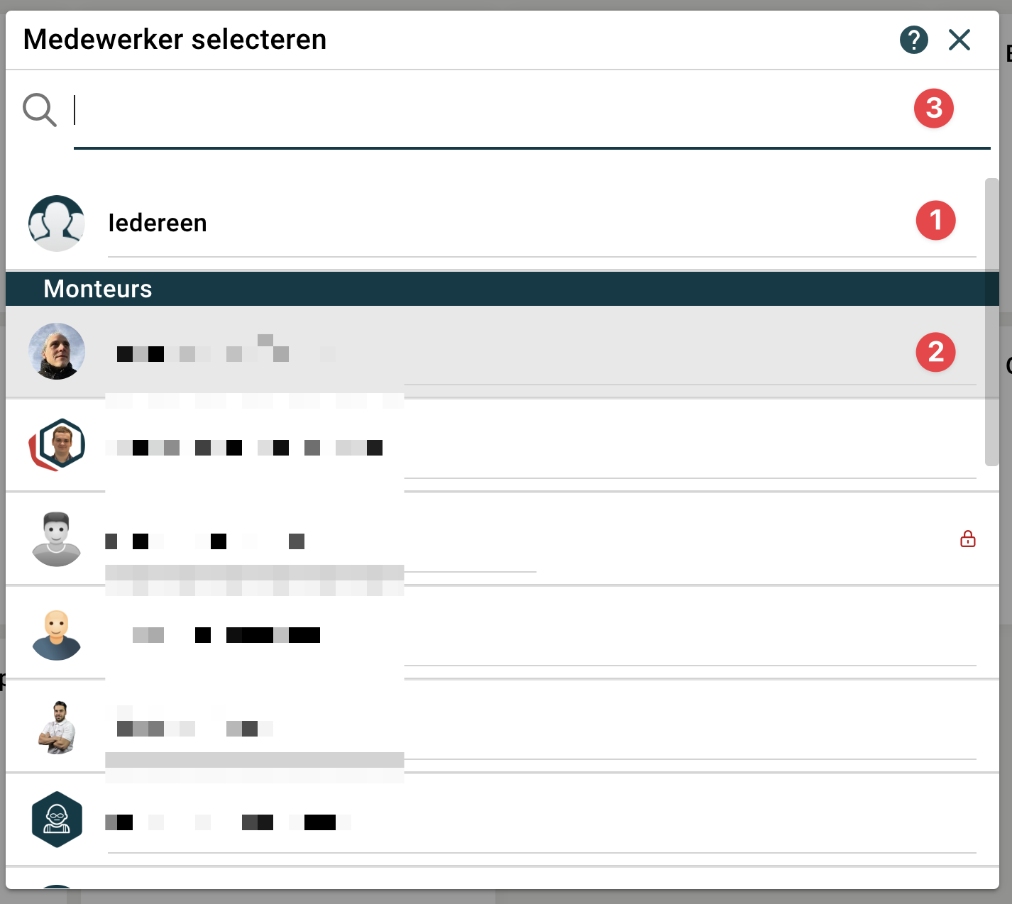 Medewerker selectie dialoog  |