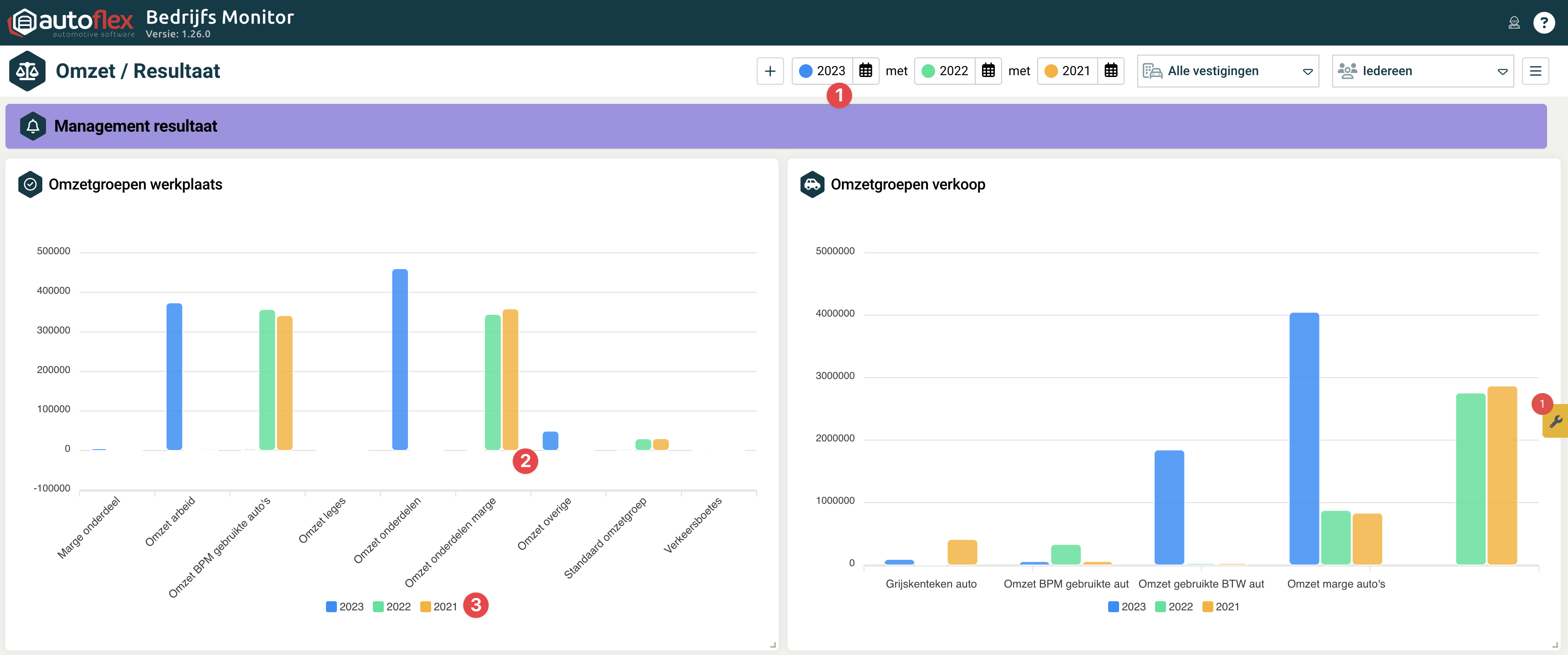 | De grafieken zullen nu zelf updaten en de meerdere perioden toten Veel plezier met de unieke Bedrijfsmonitor mogelijkheden binnen Autoflex |