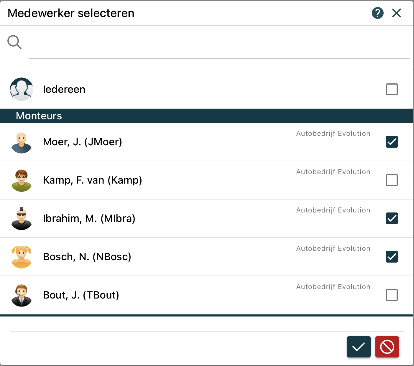 Kies iedereen om de data van alle medewerkers te zien Of kies een specifieke medewerker om deze data te zien Een medewerker kan via zoeken worden geselecteerd