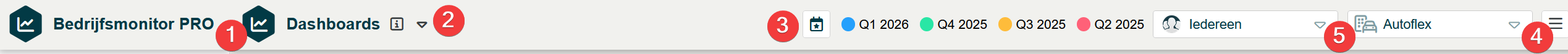 Als je de bedrijfsmonitor PRO opent dan zie je aan de linkerkant het menu voor de dashboards |