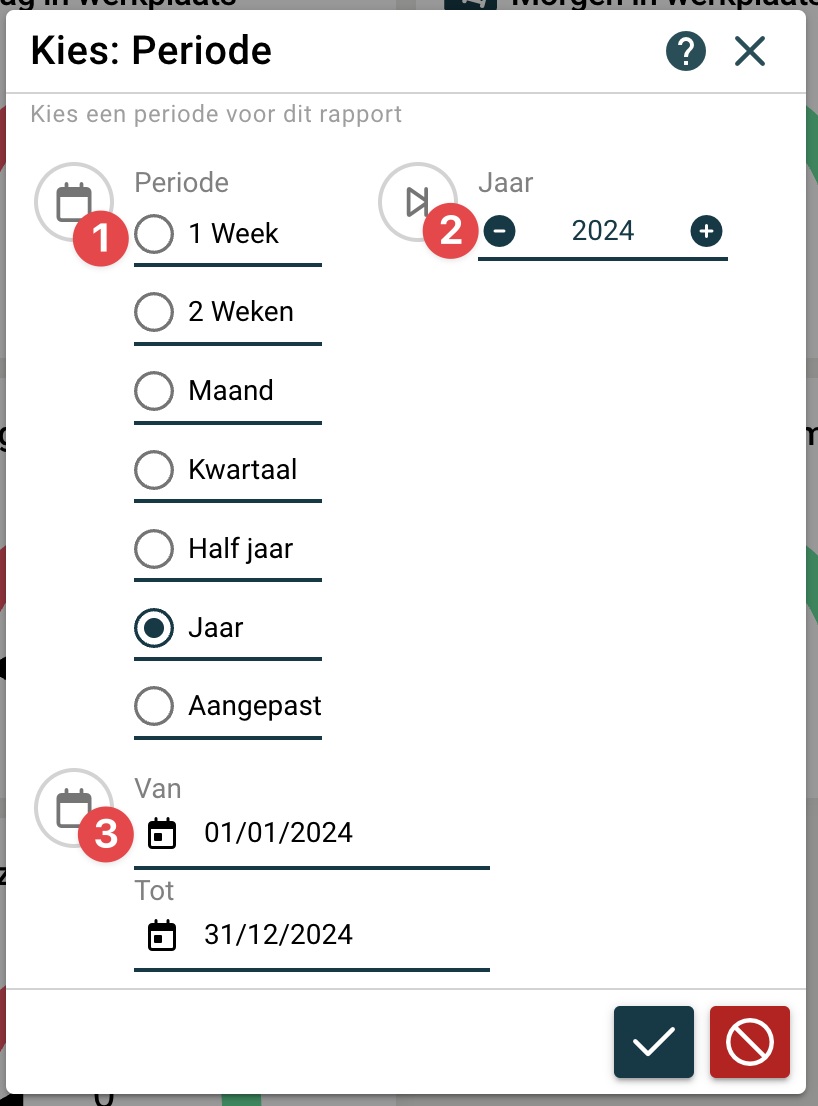 Kies een periode uit de lijst Selecteer een detail onderdeel Controleer het juiste datum bereik