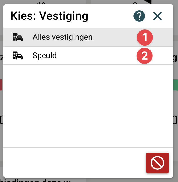 Kies alle vestigingen, om de data van alle vestigingen te zien Kies een specifieke vestiging om alleen deze data te zien