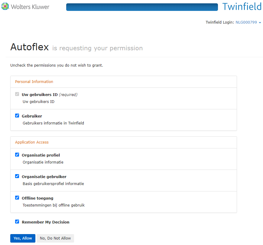 Nadat je hier op 'Yes, Allow' hebt geklikt dan kom je terug in Autoflex en is Twinfield opnieuw geauthentiseerd en kunnen de facturen weer worden gesynchroniseerd. |