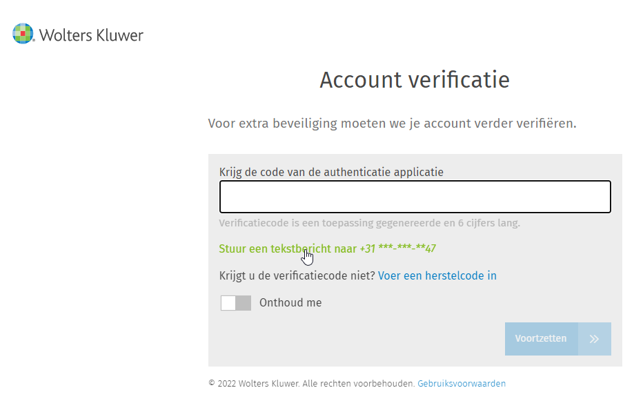 Als je jouw mailadres en wachtwoord hebt ingevoerd moet je in het volgende scherm een verificatiecode invullen. |