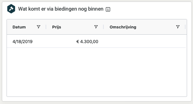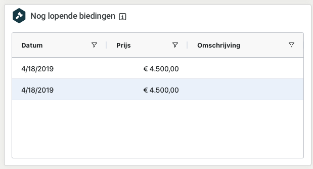 Biedingen die al rond zijn, maar nog niet ingekocht.