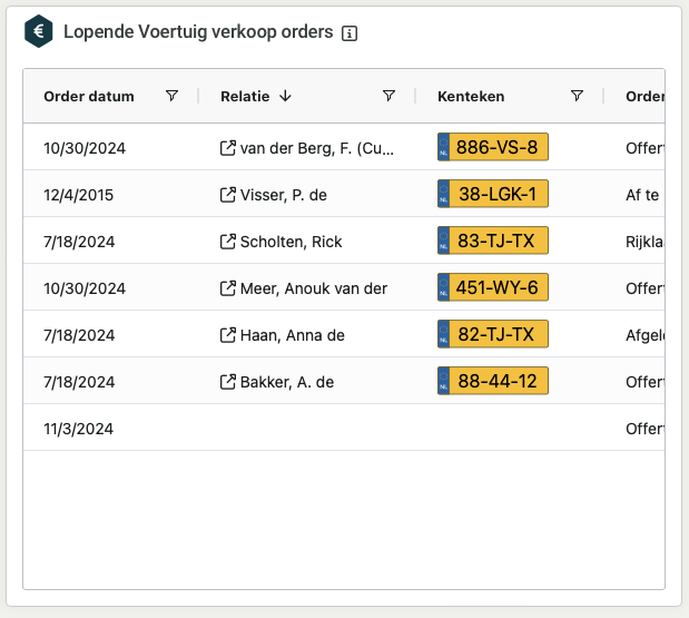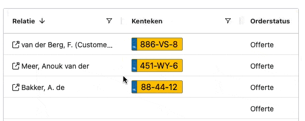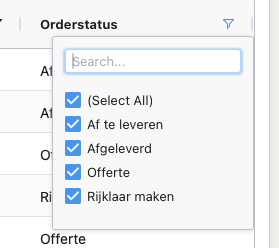 Selecteer het filter symbool in de header row van een tabel, om de data in de tabel te filteren. Alleen tabel rows met de geselecteerde waarden worden getoond.