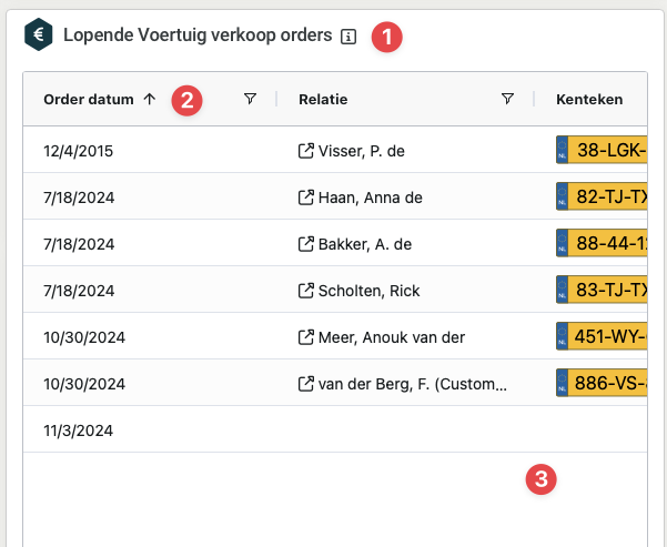 Langstaanders van de ingekochte voertuigen\nverdeeld over 3 categorien: