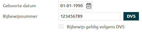 • Onderin het scherm is het ook mogelijk om te controleren of het rijbewijs geldig is. Vul de geboorte datum en rijbewijs nummer in van de klant en klik op 'DVS'.