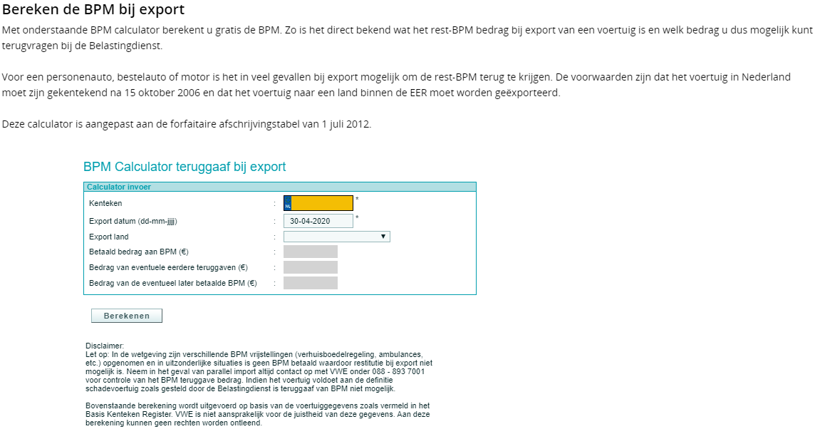 In sommige gevallen kan het BPM bedrag afwijkend zijn, en kun je geen gebruik maken van de standaard berekening in Autoflex. Hieronder vind je een paar voorbeelden daarvan. Het gebeurt met name bij geïmporteerde voertuigen. Wat opvalt bij de meldingen van het VWE is dat het betreffende voertuig mogelijk eerder een vrijstelling van BPM heeft genoten en dat er wordt geadviseerd om contact op te nemen met de Belastingdienst voor de controle van het juiste BPM teruggave bedrag.
