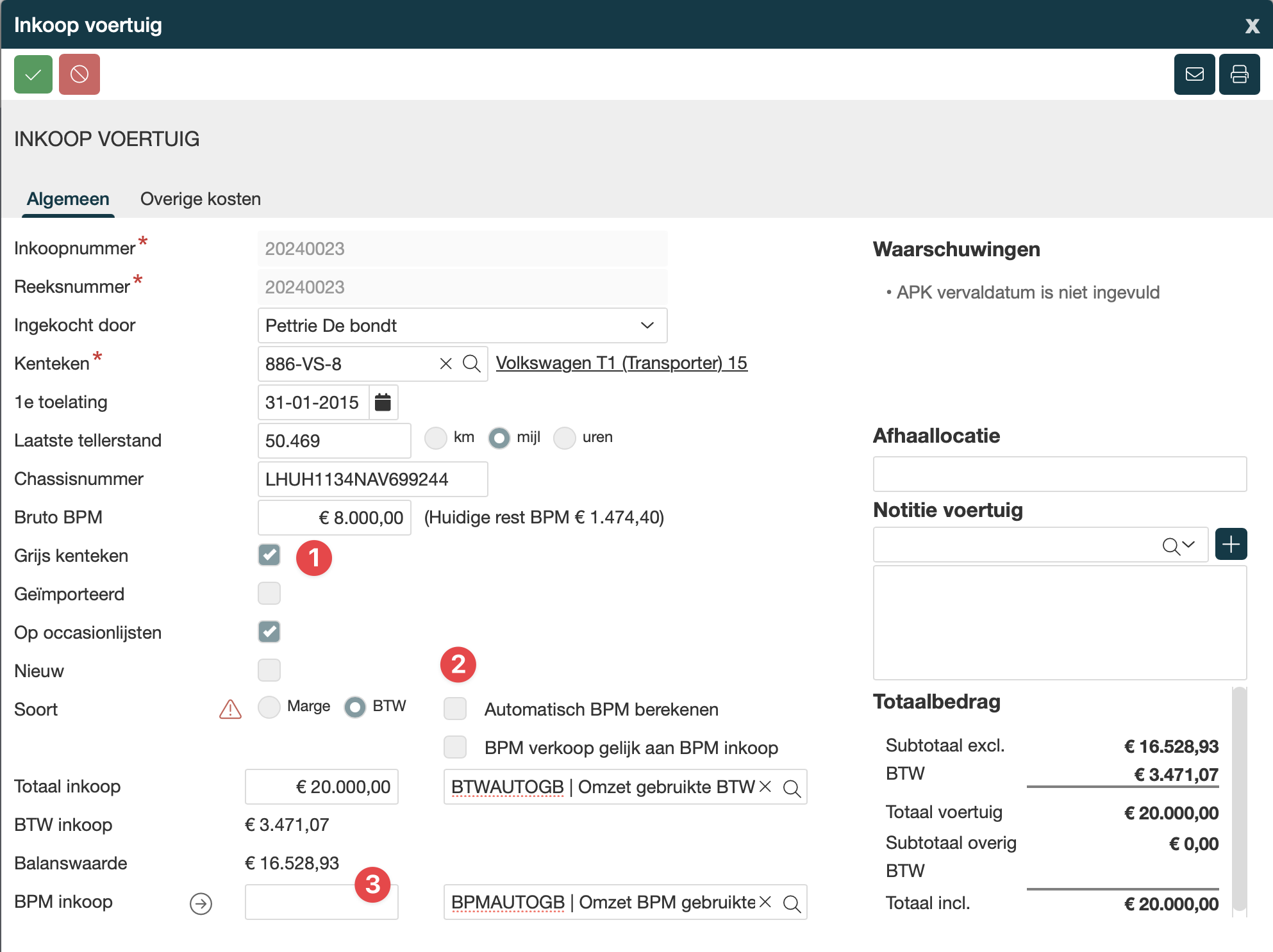 Stap 3 - Verkoop voertuig (BPM controleren)