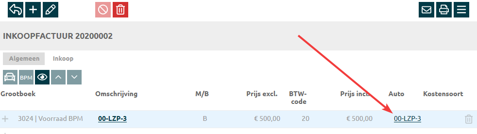 Koop je een buitenlandse auto in, dan wijkt de BPM vaak af. Vink daarom de BPM berekening uit, en pas het bedrag bij BPM inkoop aan. Wordt het BPM bedrag op een later moment bekend, dan koop je deze in via een aparte factuur. Zet het BPM bedrag in deze inkoop dan op €0,00. |