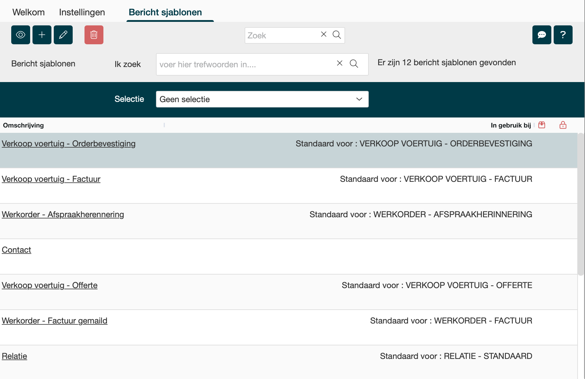 Om een bericht te versturen heb je Bericht sjablonen nodig. Er zijn een aantal standaard sjablonen, maar je kunt ze naar eigen wens aanpassen.