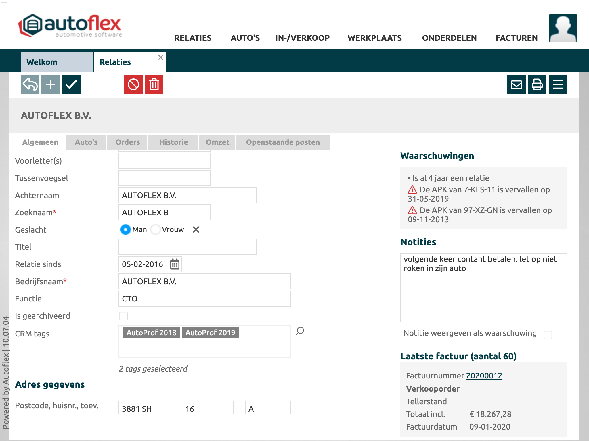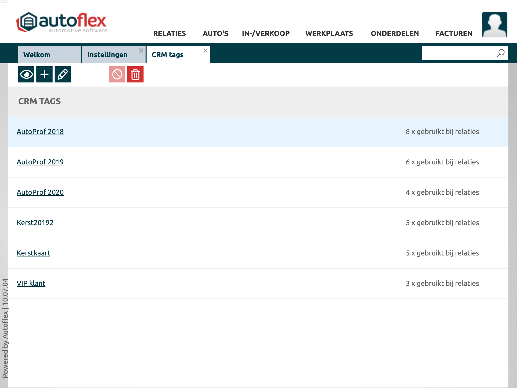 CRM tags bij de relatie |