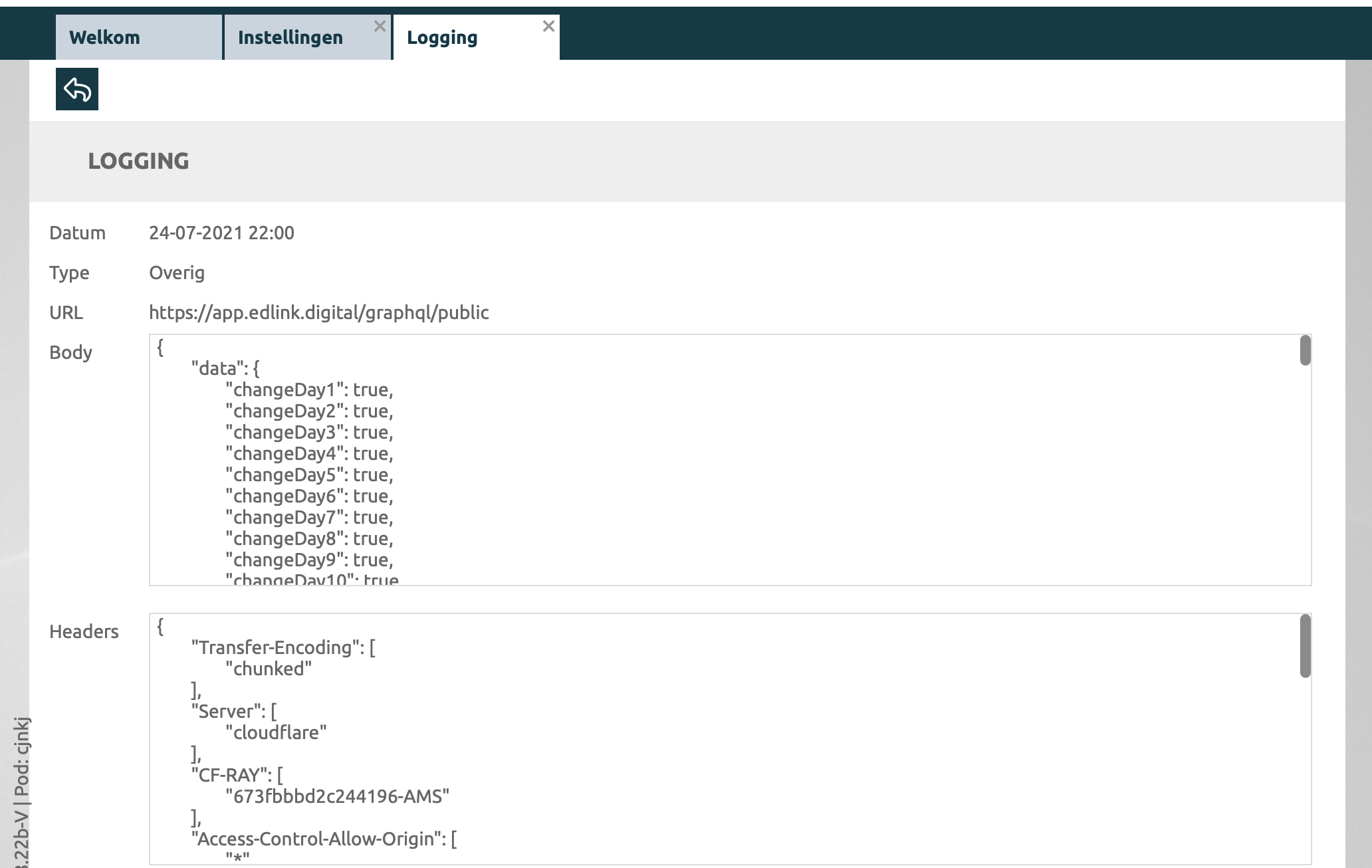Wat kan ik zien in de logging?