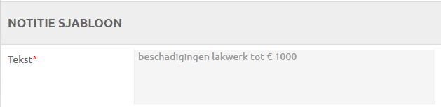 Een notitie sjabloon wordt gebruikt om snel notities bij een voertuig en/of bieding te kunnen toevoegen.