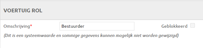 De voertuig rol geeft het relatietype aan tussen een voertuig en een relatie. Deze is zichtbaar in het Voertuigen en in de Relaties |