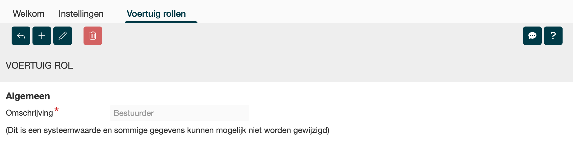 De voertuig rol geeft het relatietype aan tussen een voertuig en een relatie