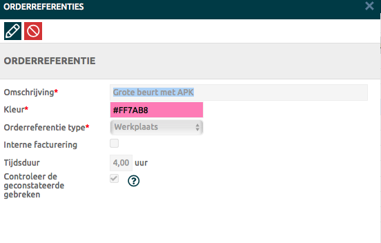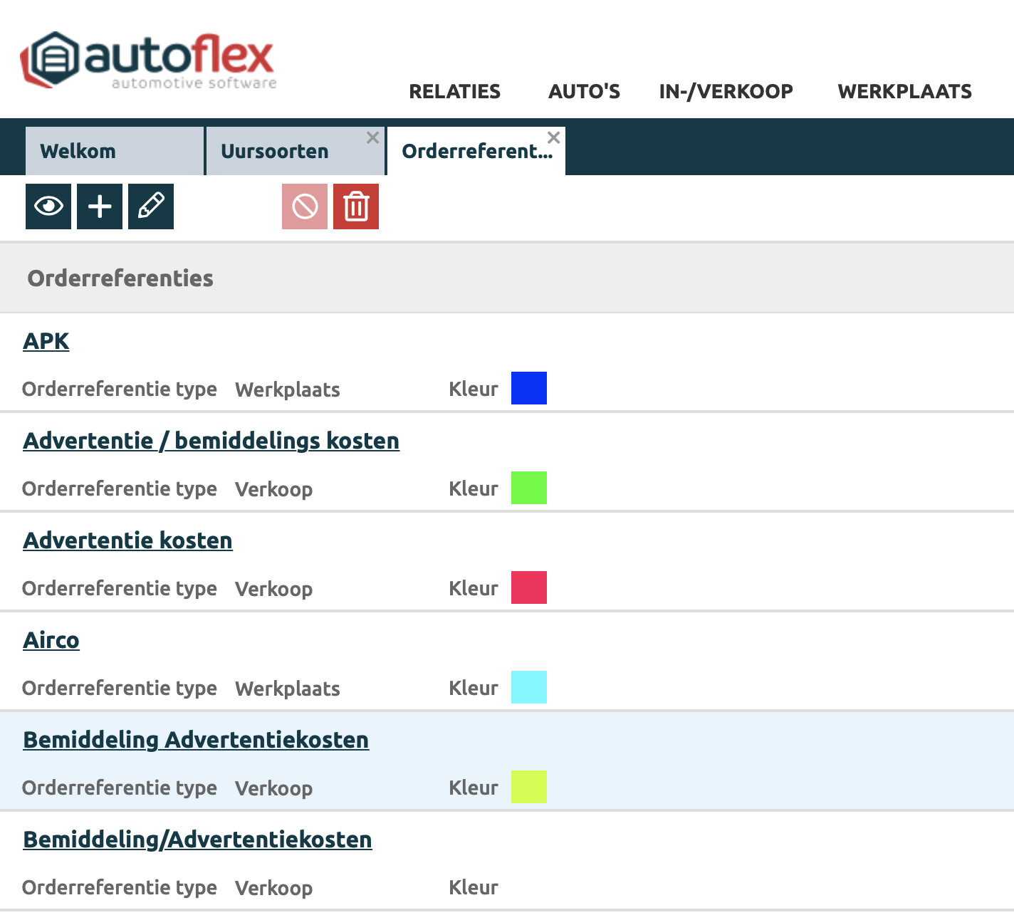 Orderreferentie type = hier geef je aan of deze gebruikt wordt voor de werkplaatsorders of voor orders voor de autoverkoop