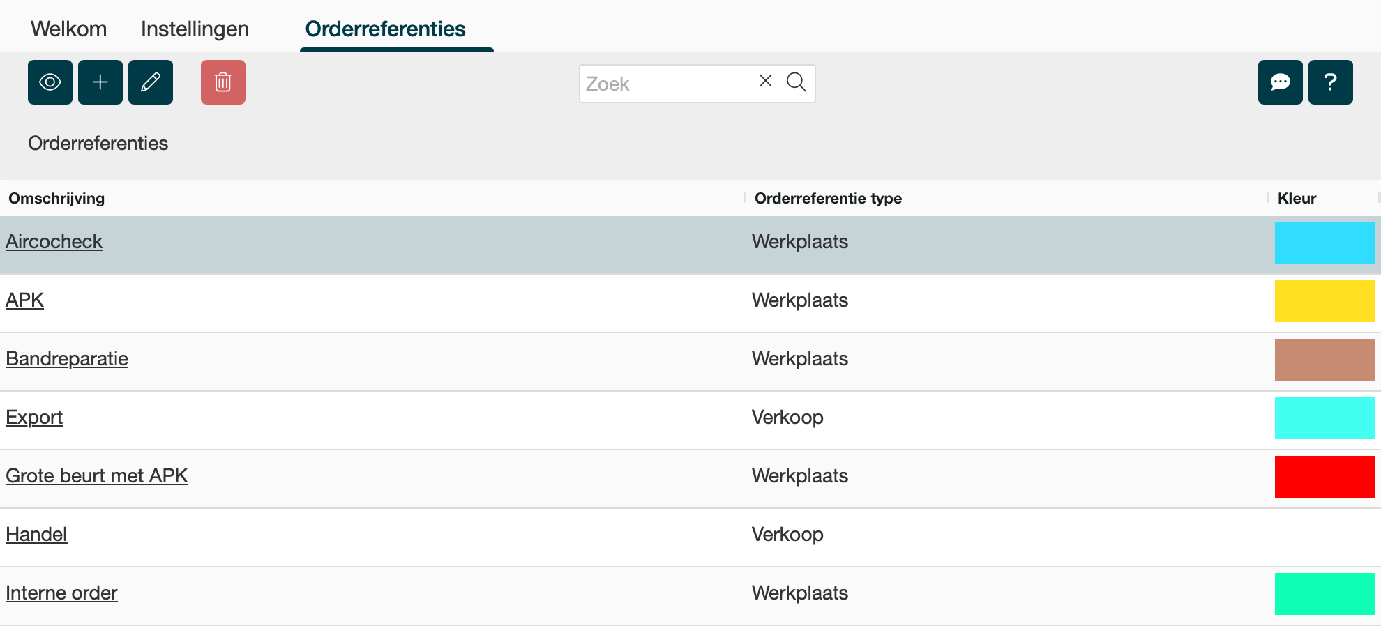 Orderreferentie type = hier geef je aan of deze gebruikt wordt voor de werkplaatsorders of voor orders voor de autoverkoop