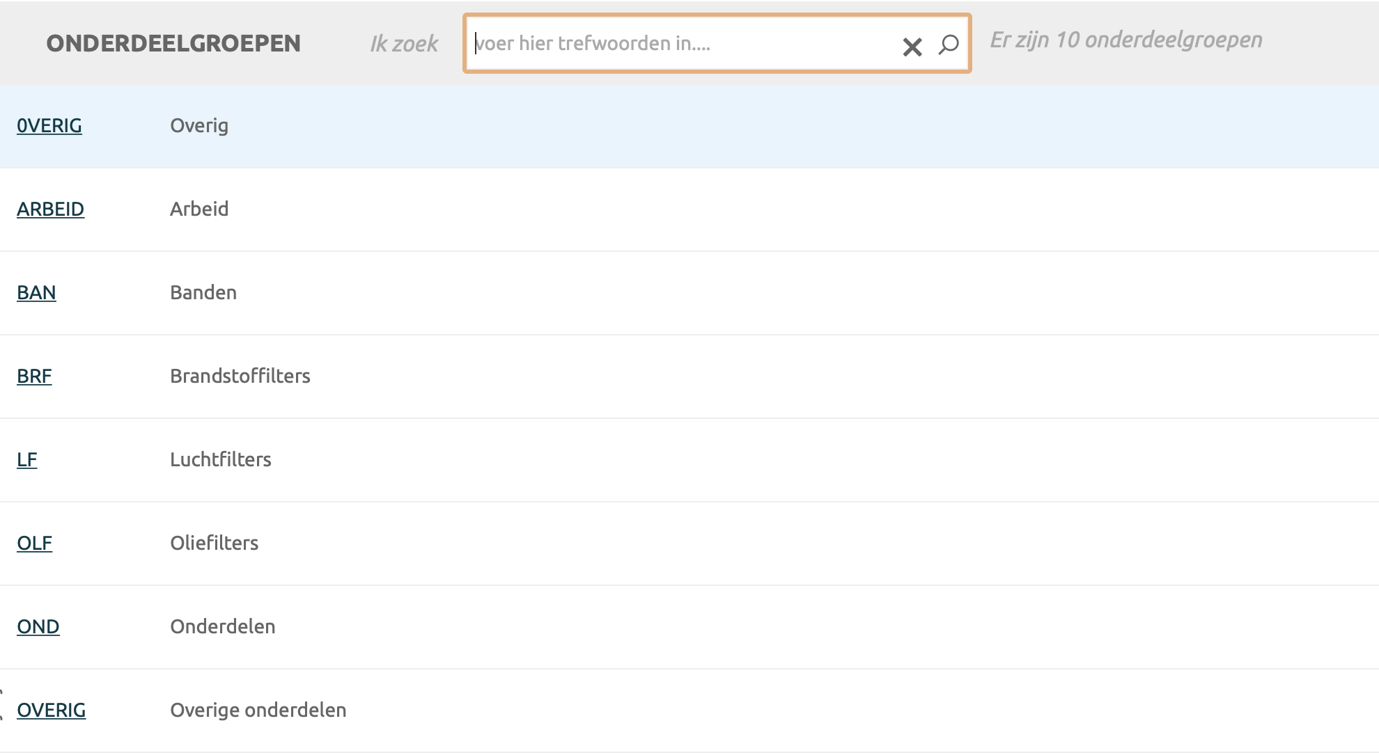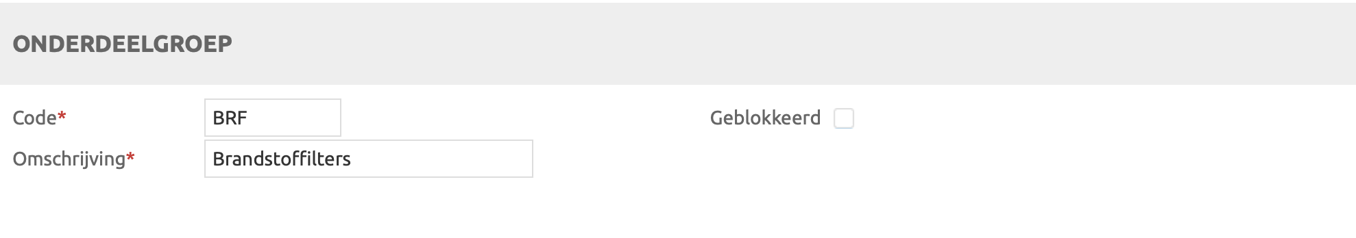 • Omschrijving = Beschrijving van de onderdeelgroep