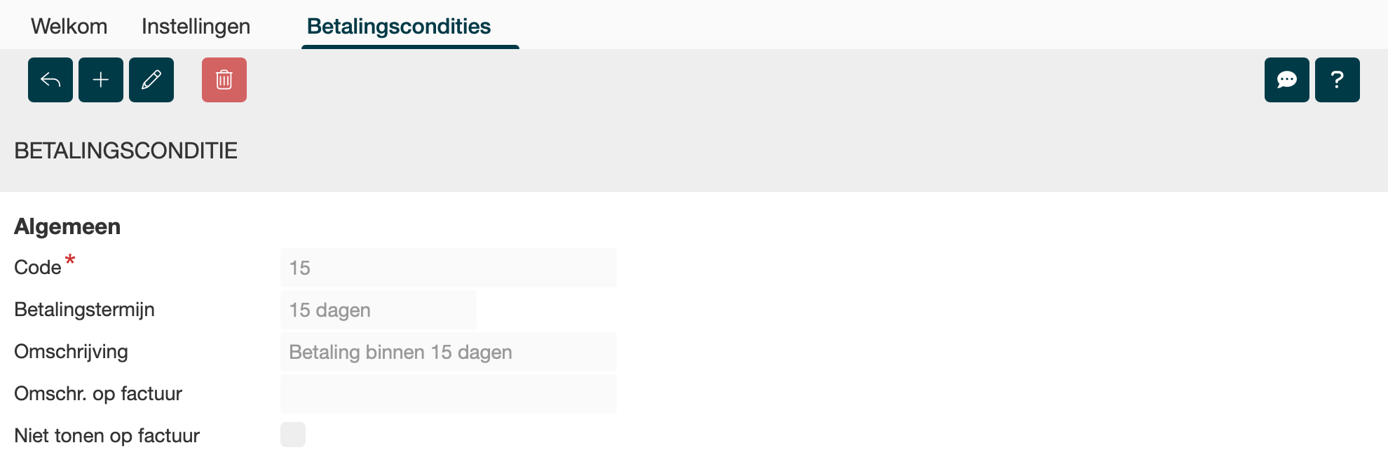 Betalingsconditie detail scherm |