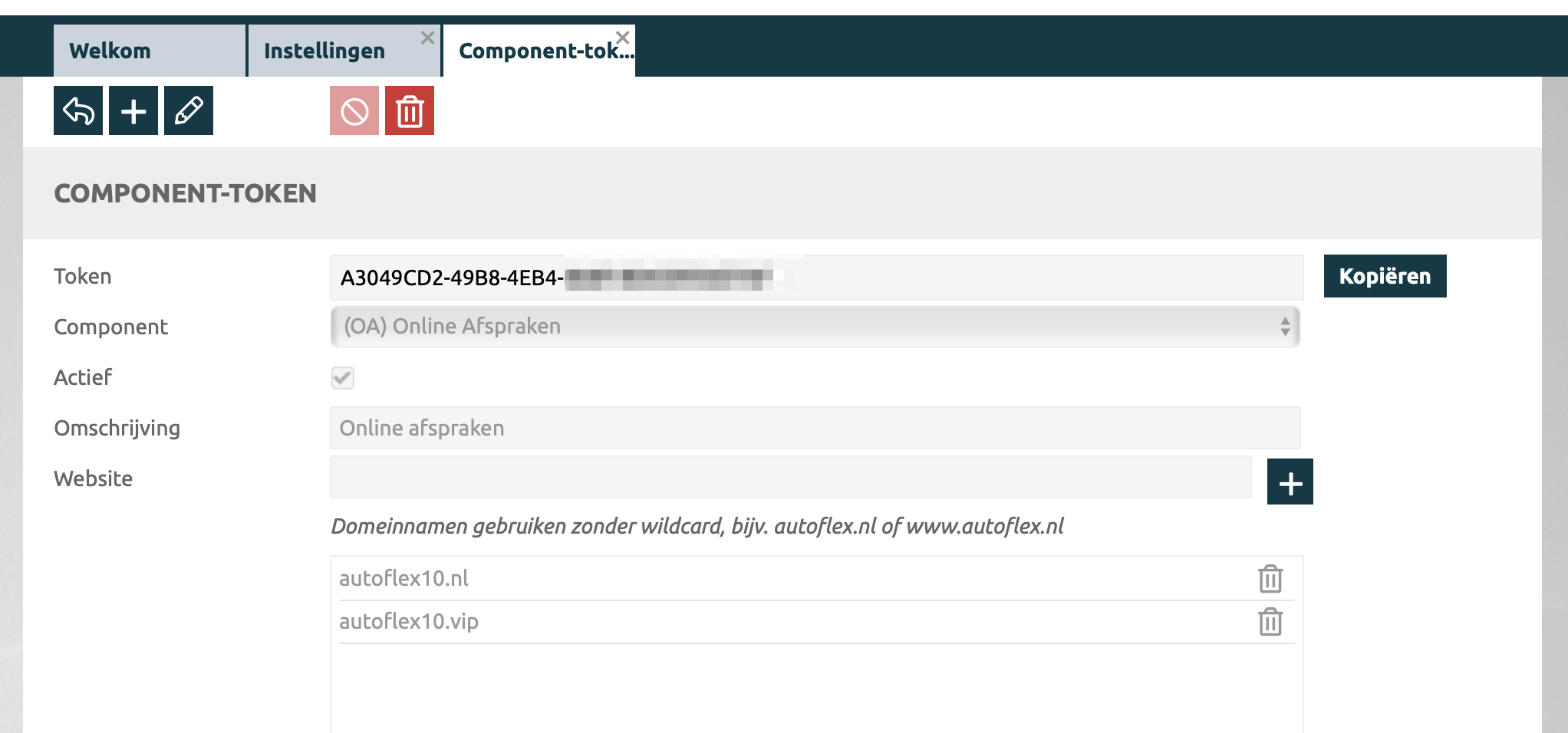 Component-tokens worden gebruikt om Autoflex componenten die in je eigen website actief kunnen worden gemaakt te koppelen met je eigen Autoflex 10 omgeving.