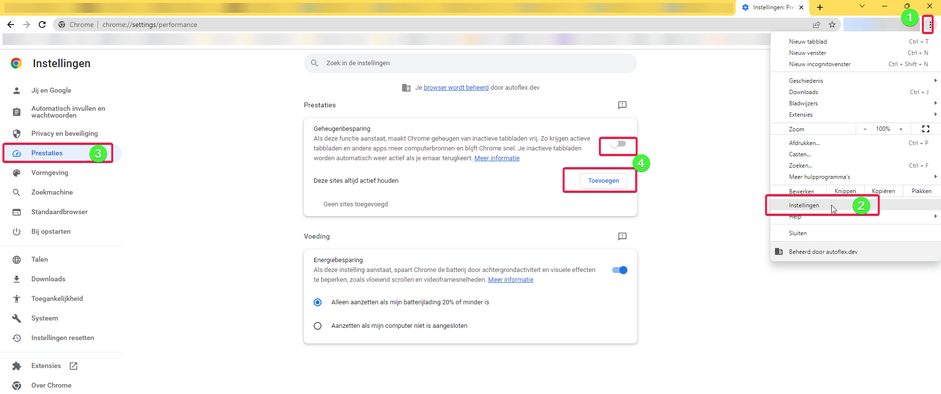 Prestaties browser en Autoflex actief houden