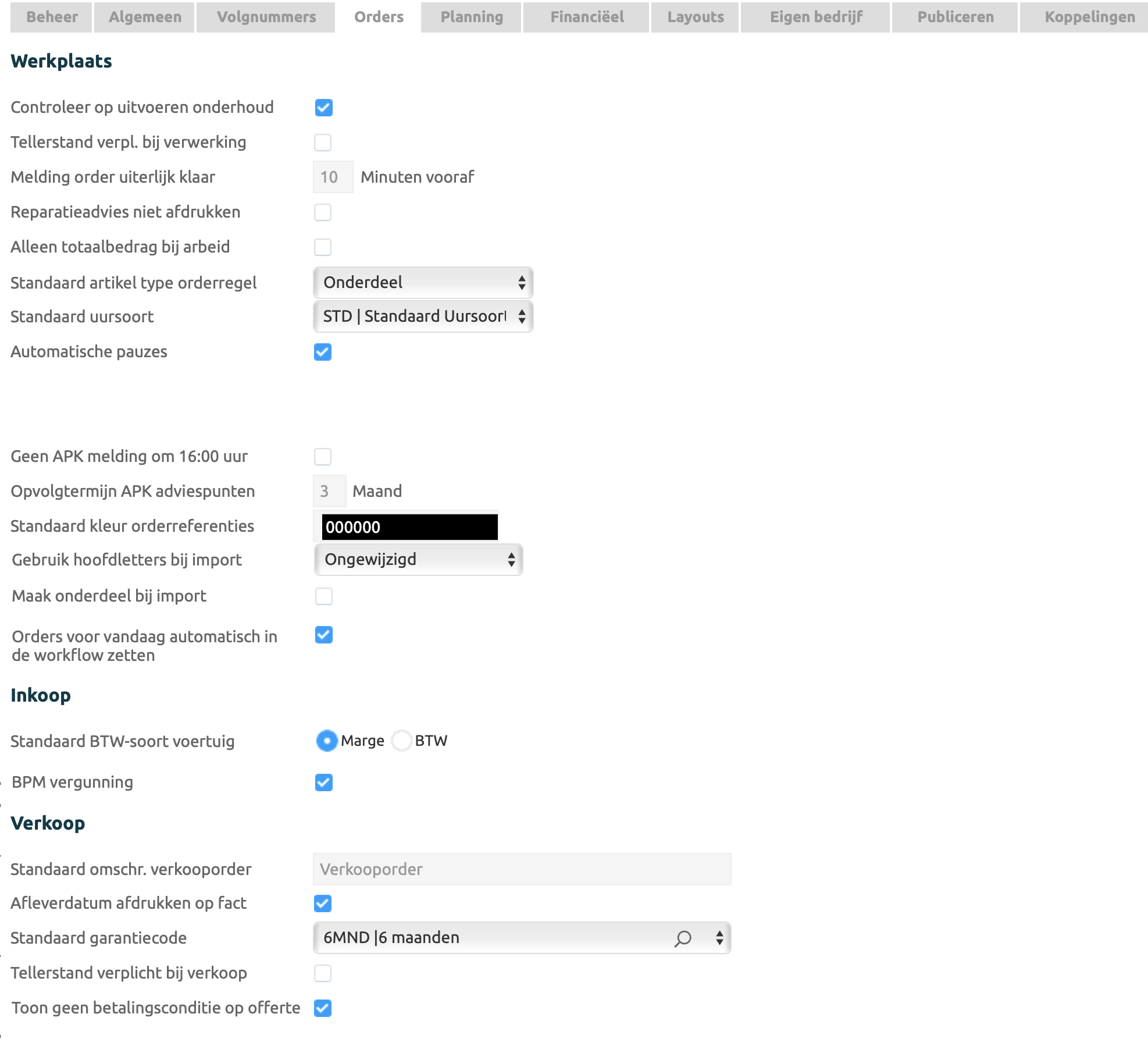Alle instellingen die te maken hebben met orders |