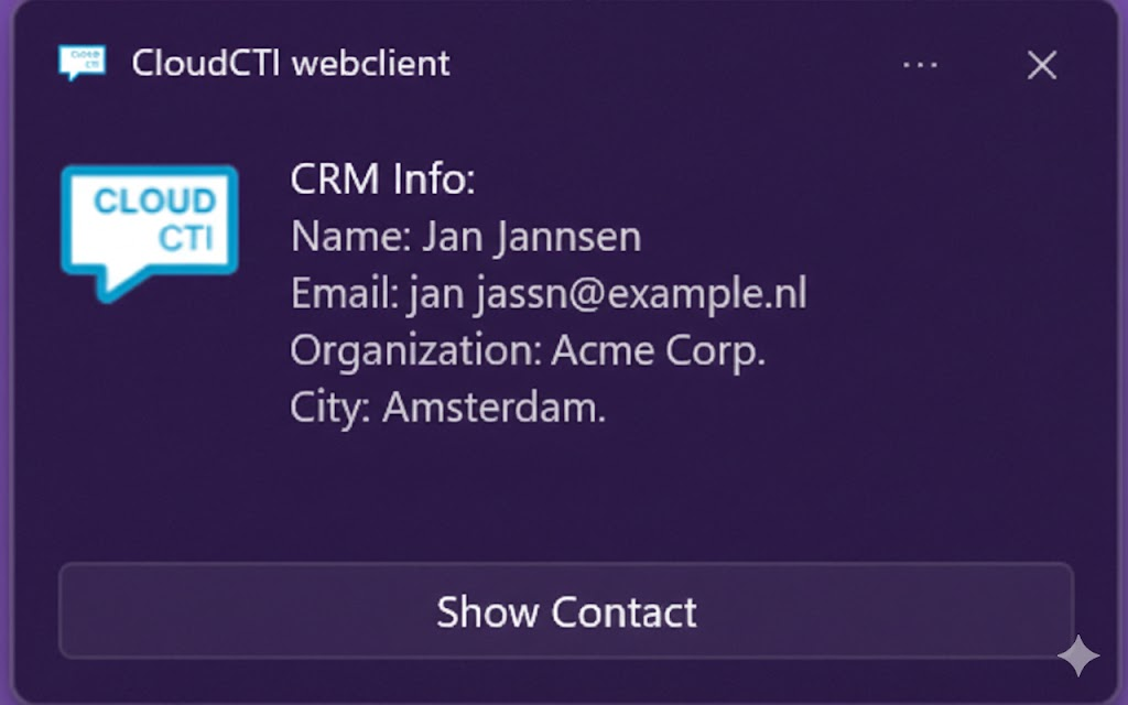 Met de Autoflex telefonie integratie van CloudCTI wordt de beller herkend aan het meegestuurde telefoonnummer en kunnen diverse acties geautomatiseerd worden. Ook kan automatisch een gesprek worden opgezet.
