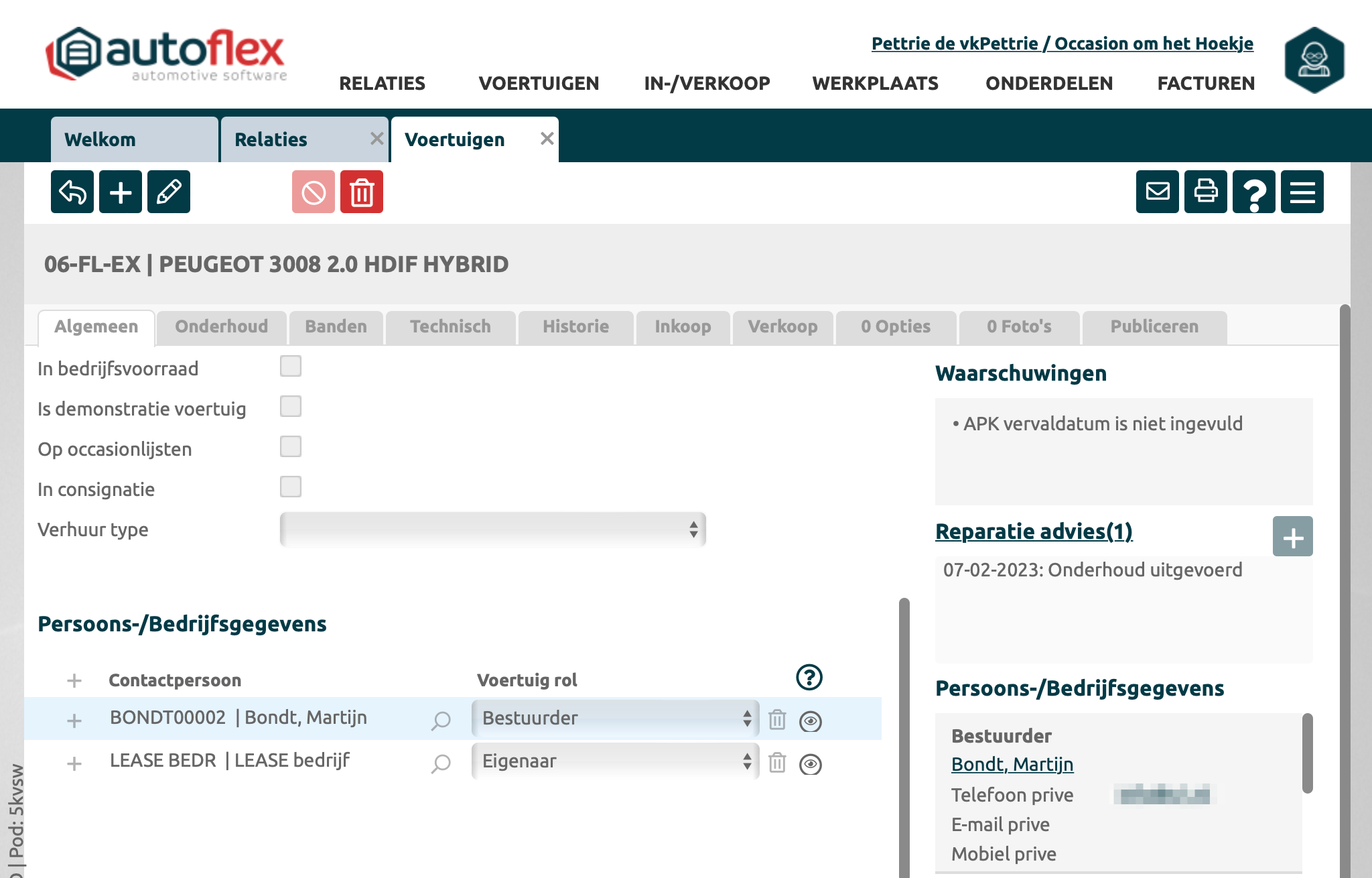 Koppel de leasemaatschappij als eigenaar aan het voertuig. De berijder van het voertuig krijgt de rol Bestuurder.