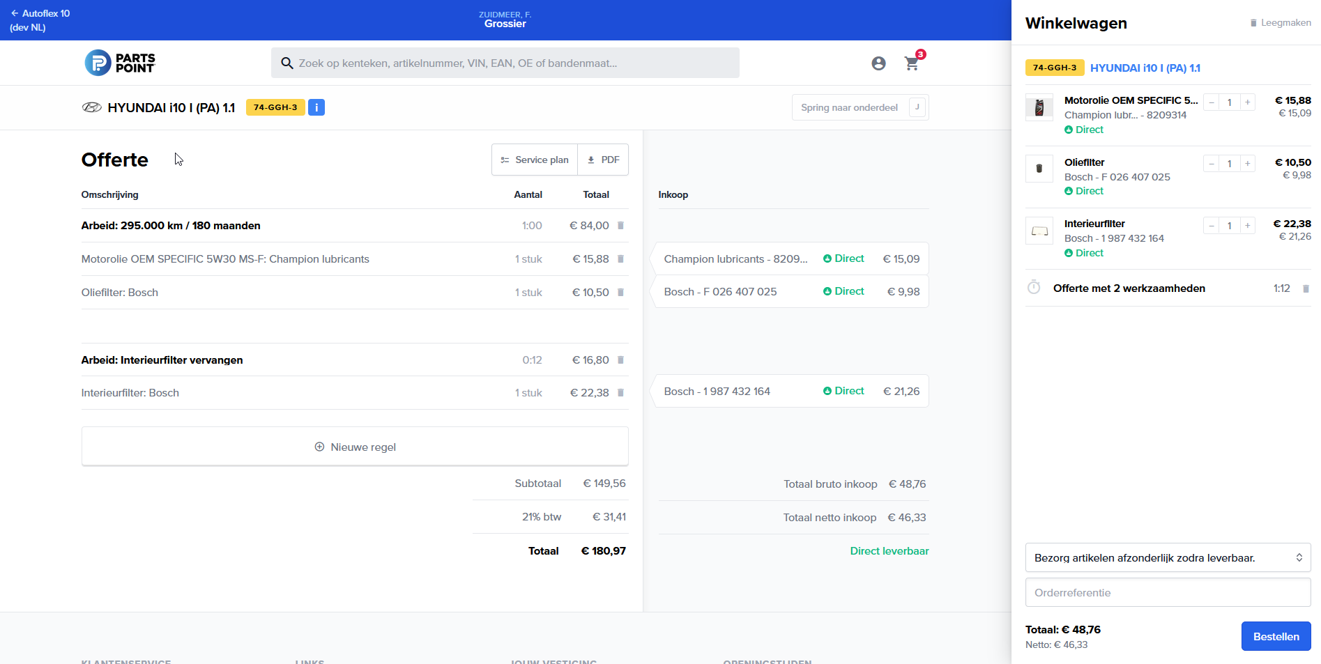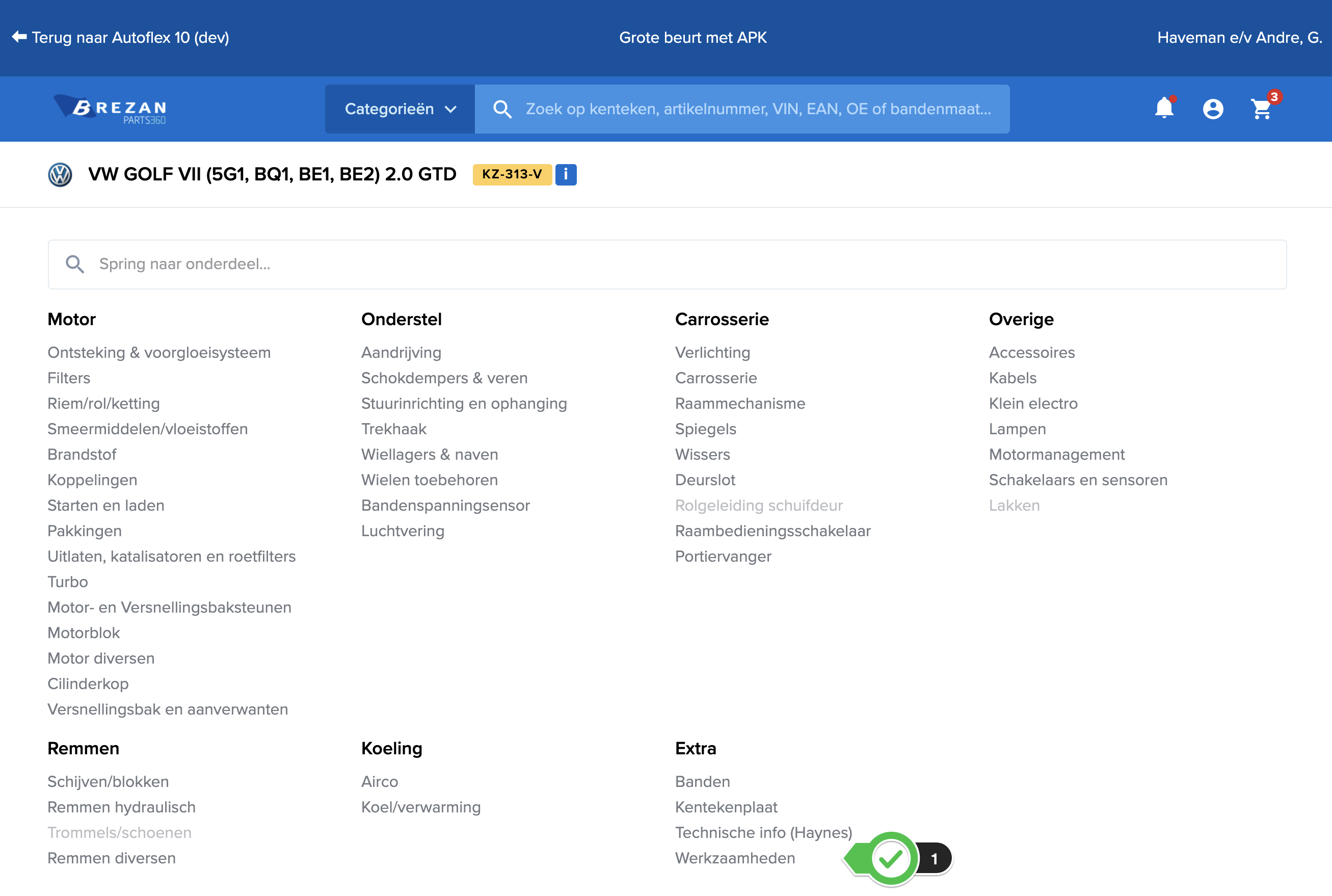 Open de grossiersportaal altijd vanuit de betreffende werkorder, dit zorgt ervoor dat de juiste order en het juiste voertuig gekoppeld zijn zodat alleen de juiste onderdelen zichtbaar zijn