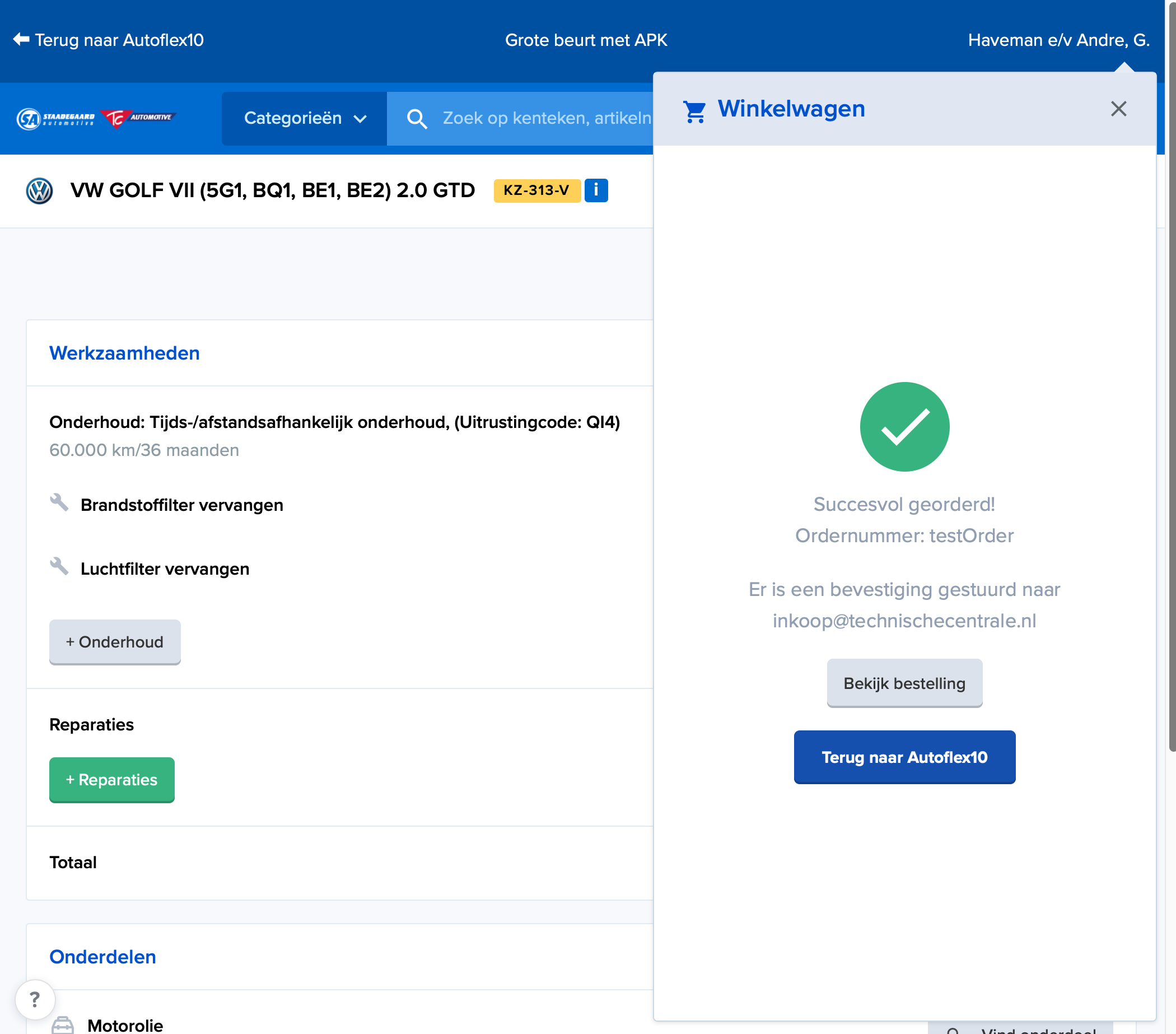 Klik daarna op Terug naar Autoflex10 (links bovenin afbeelding 2) om weer terug te komen in de werkorder.