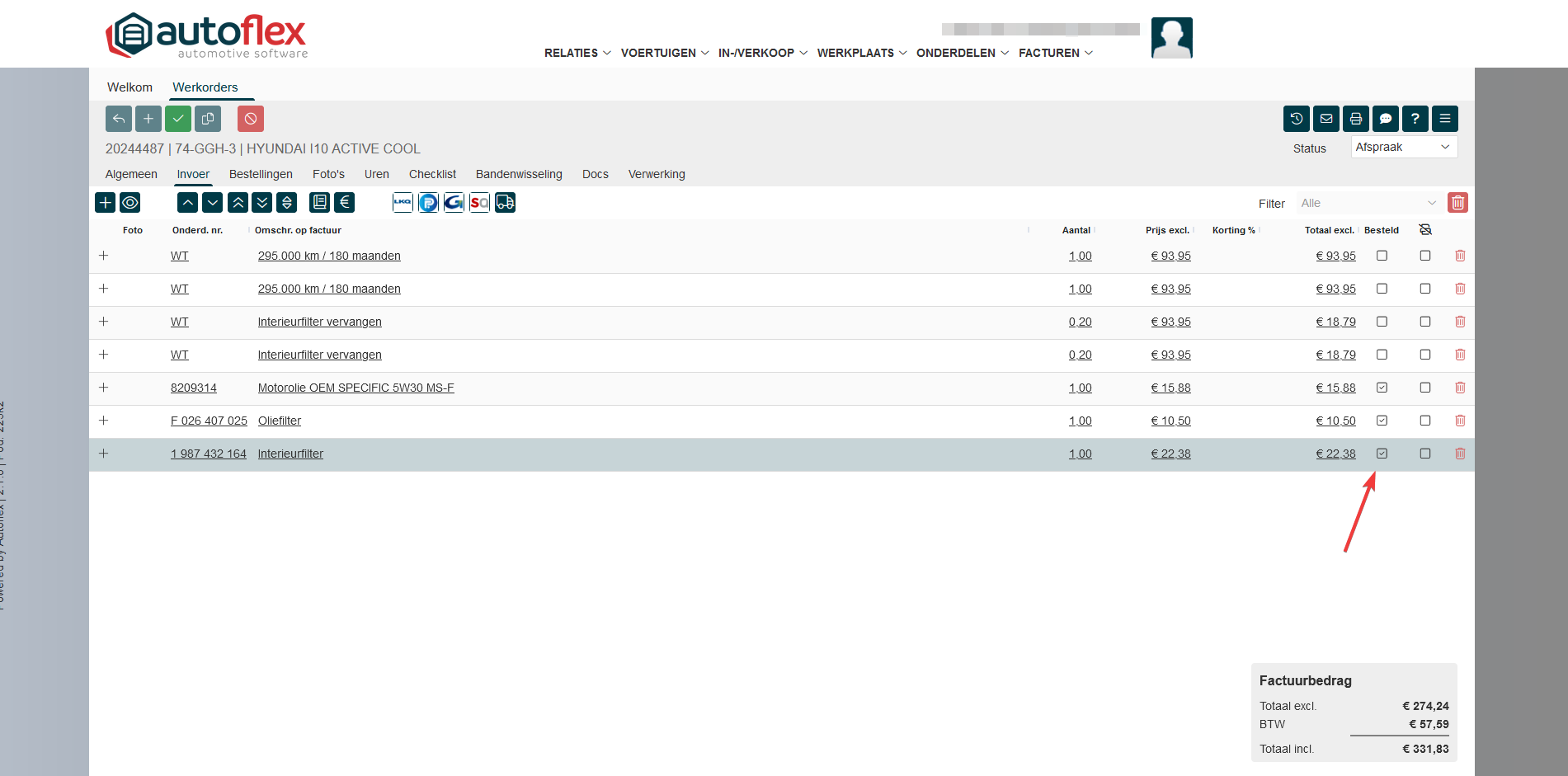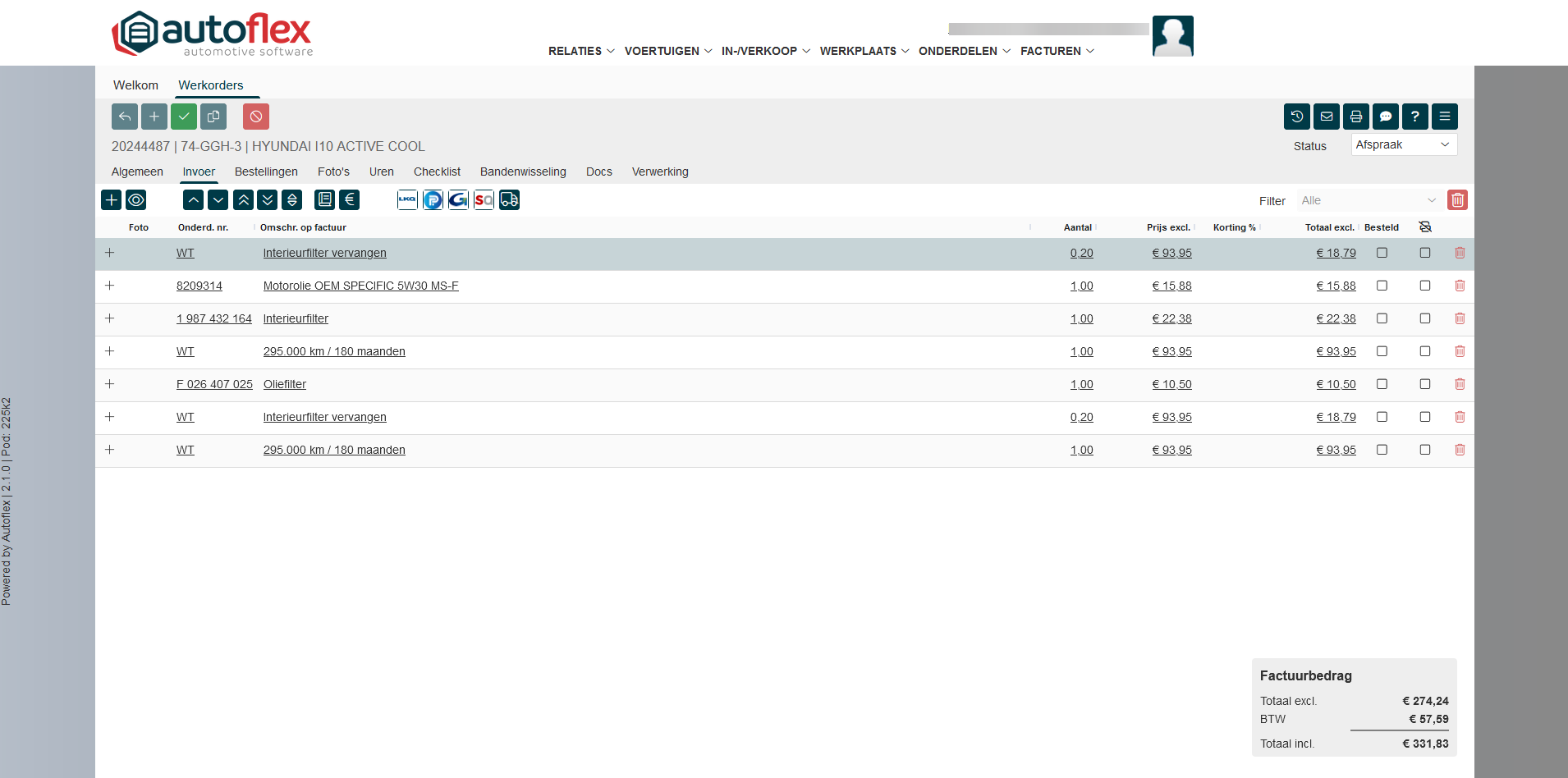 Als de prijs bij de grossier hoger is dan in Autoflex, dan wordt deze in Autoflex veranderd. Dit zorgt ervoor dat je nooit te weinig berekend naar de klant. Als de prijs wel lager moet zijn, geef dan korting. Dan komt dit ook op het factuur te staan die je met jouw klant mee geeft. Dit laat de klant zien dat de korting is gegeven.