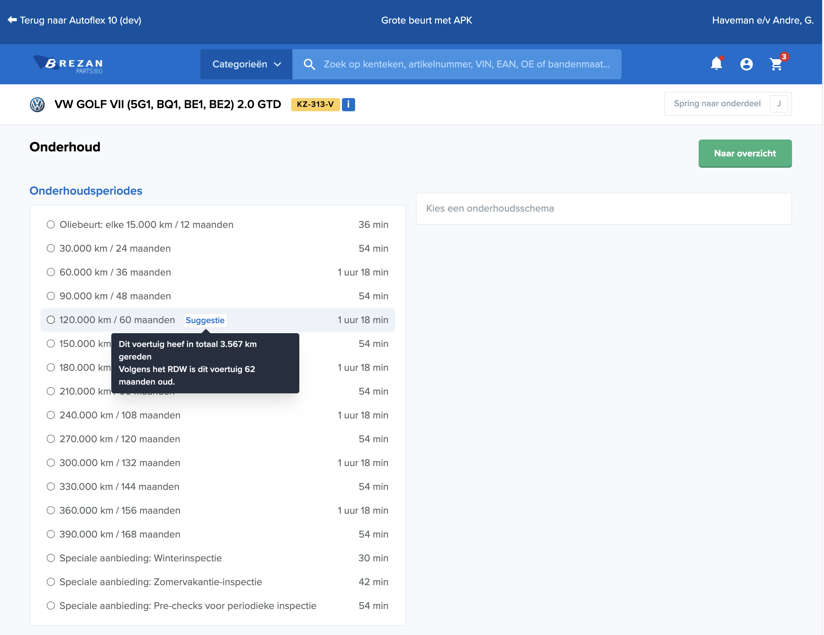 Doorgegeven kilometer stand wordt gebruikt voor de suggestie bij het onderhoud |