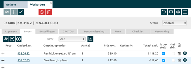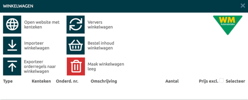 3. Kies nu ‘Importeer winkelwagen’, de gekozen onderdelen worden op de werkorder geplaatst maar niet besteld.